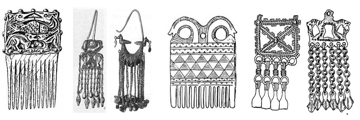 Слева скифские, справа финно-угорские женские украшенияБолее чем тысячелетнее знакомство с кочевыми народами, тем более с такими колоритными как скифы, оставило заметный след в этнографии. Но тут потребуется дать несколько пояснений.