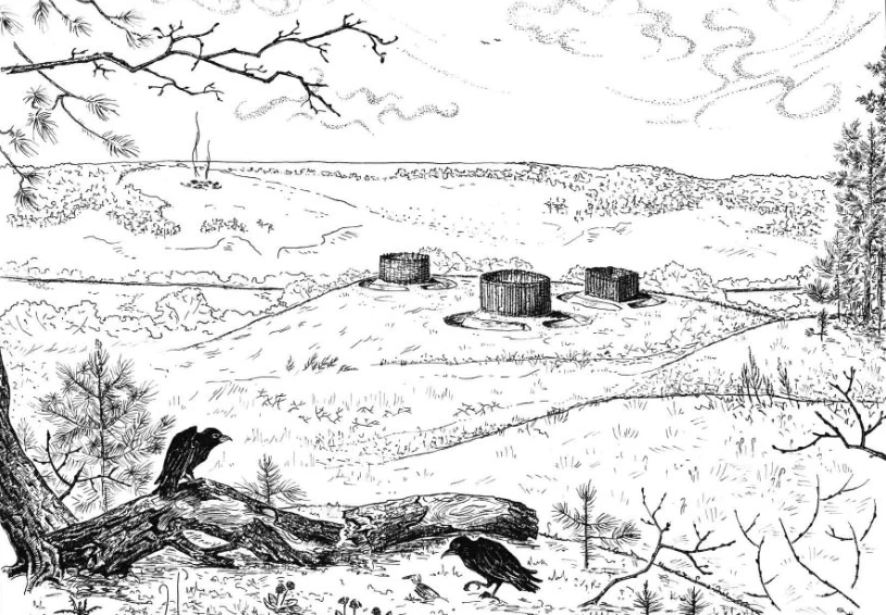Третий вариант домика мертвых – это что-то вроде гигантской клумбы, огороженной частоколом. В клумбу клали прах после кремаций, постепенно ее заполняя. Похожую конструкцию описывал в X в. Ибн Фадлан в рассказе о похоронах знатного руса.