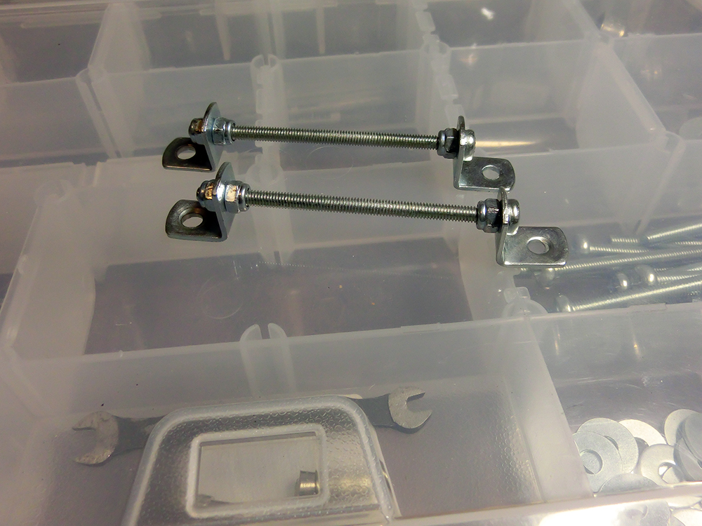 Из магазина метизов: болты, гайки, гроверные шайбы и просто шайбы на 4 и 5 мм, россыпью, без счета. Отдельно длинная шпилька на 4 мм. Крепеж – 2 оцинкованных уголка на 75 x 75 мм, по 2 пластины на 80 и 100 мм. И еще 6 уголков на 15 x 15 мм. И еще нужен шланг на 8 мм, около 1 метра, чтоб с запасом.