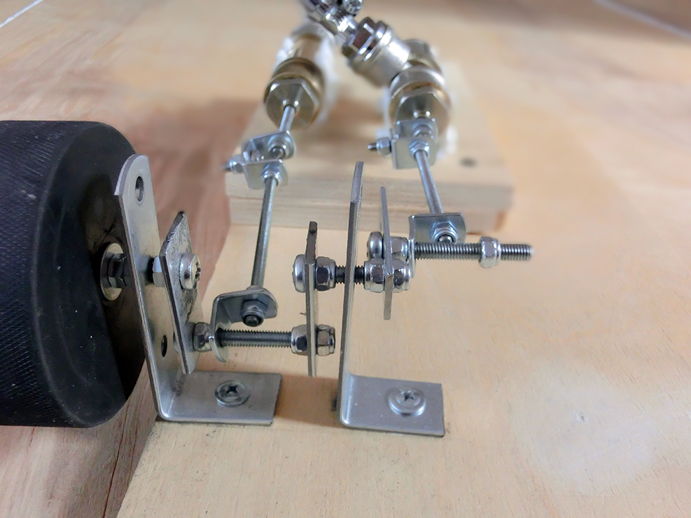Шатуны нужны для преобразования поступательного движения во вращательное. Изготавливаются из 75 мм болтов М4, на концах – 15 мм уголки.